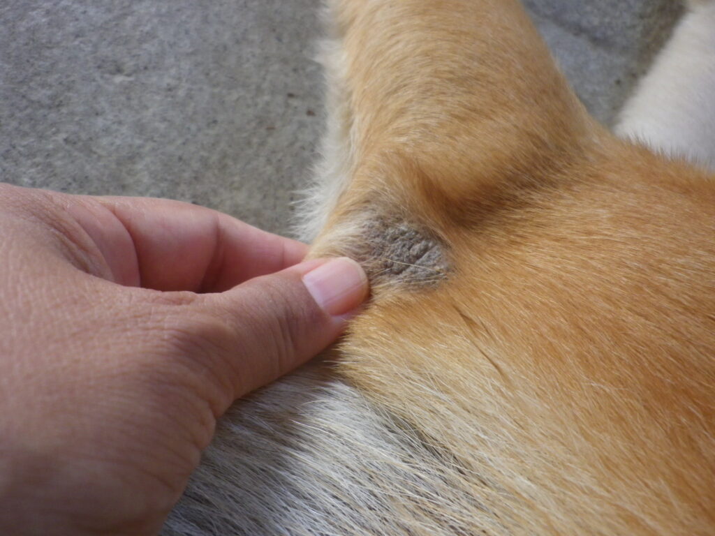 ここだけ小さい頃から禿げてごつい皮膚になっています。