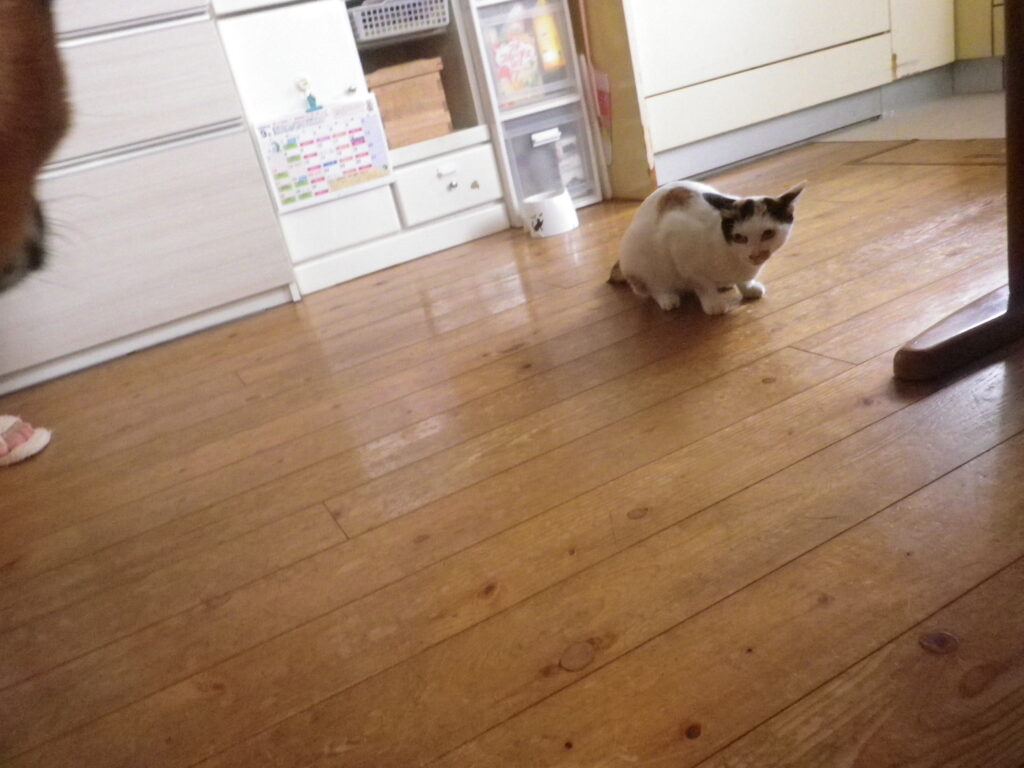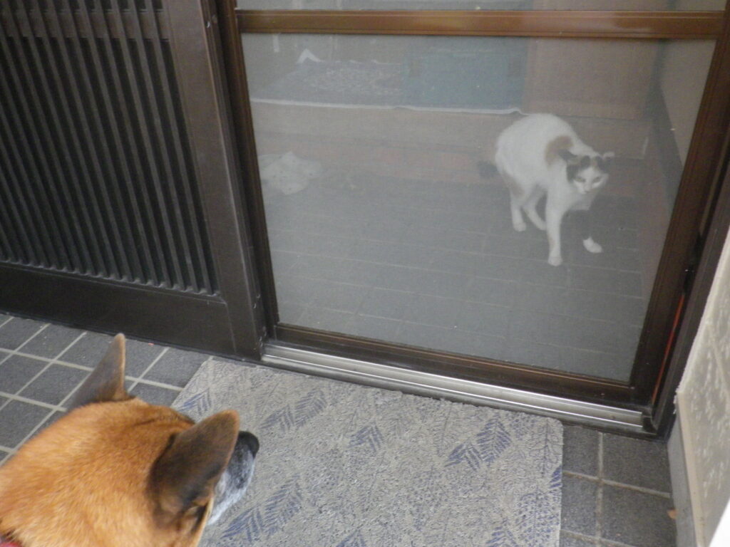 こないだは攻撃態勢のままちょこっと踏み込まれただけで「ギャン!」と叫んでいました。