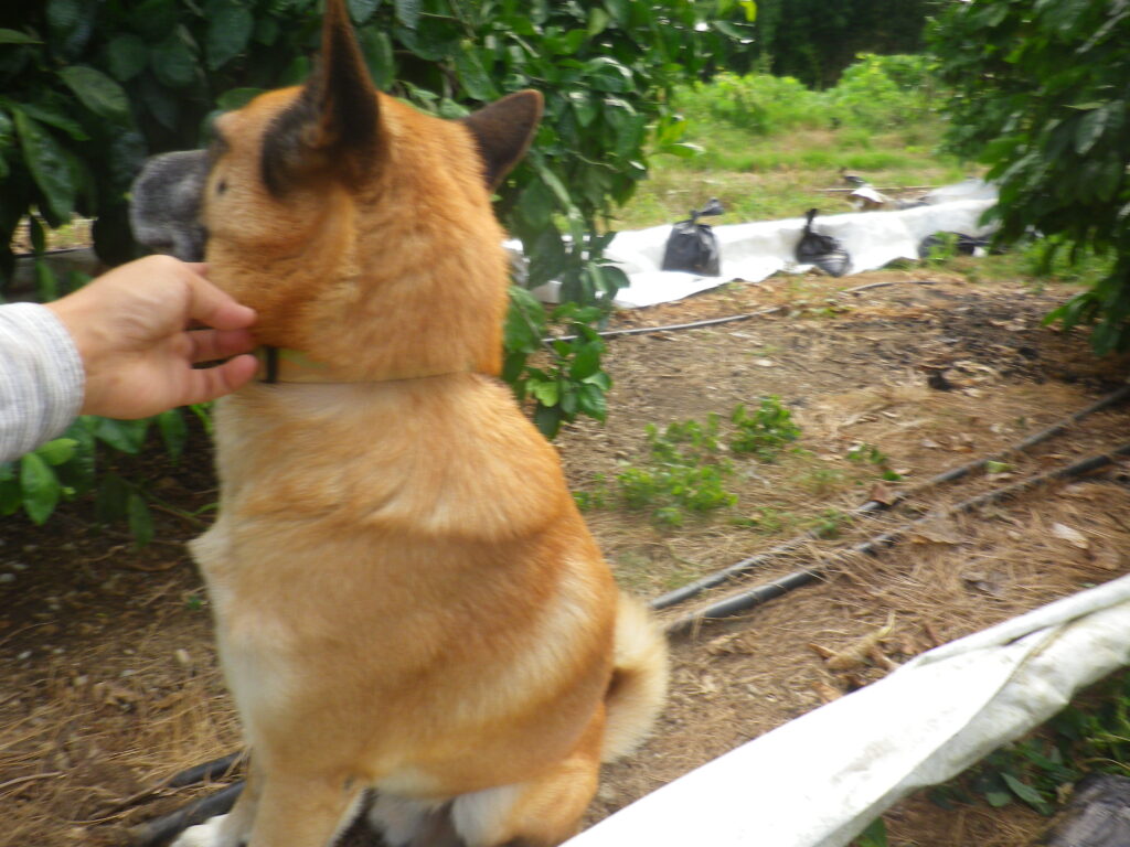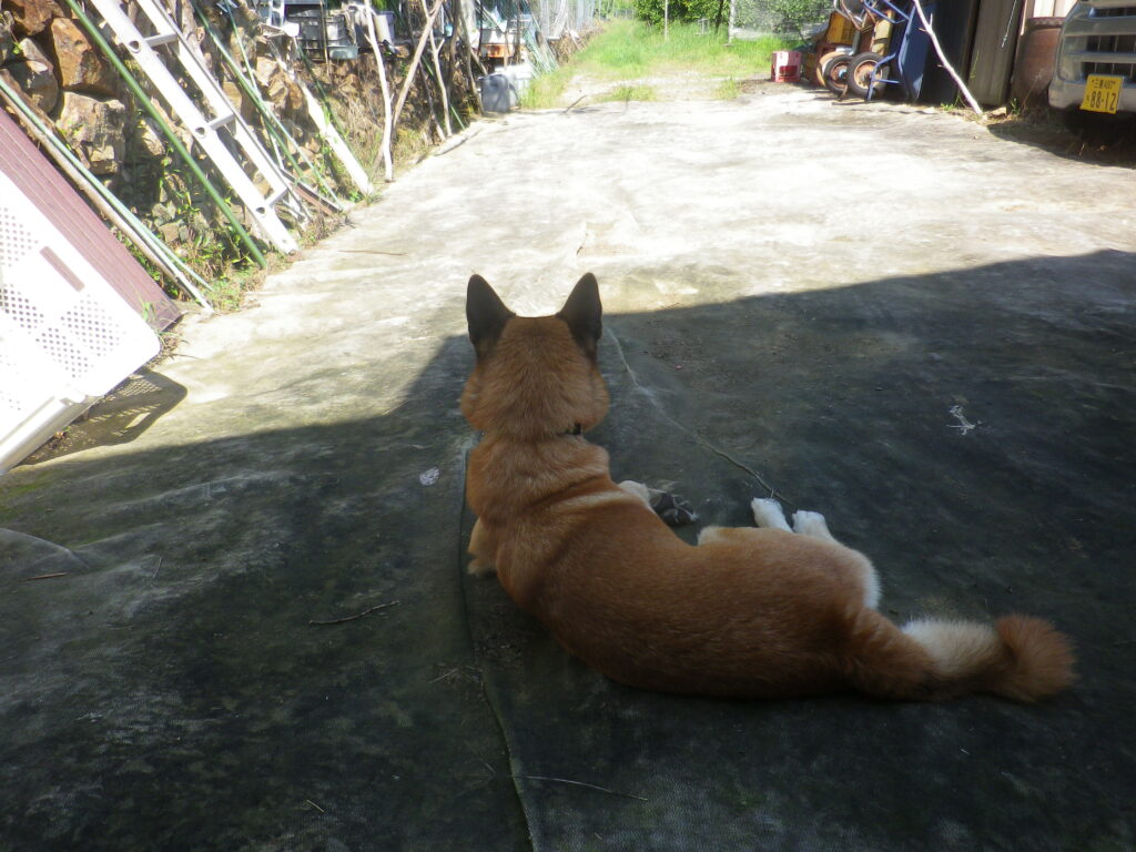 最近は日向ぼっこもし始めた茶太郎も、この暑さにまた小屋の土間に張り付いて暑さ凌ぎをしておりました。アヅイ
