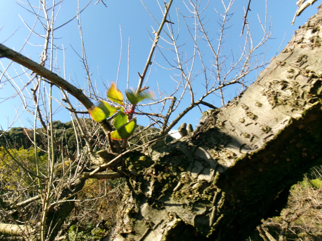 すっかり落葉した中で出て来た新芽です。