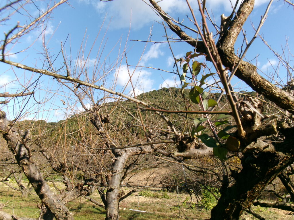 まだ草も冬枯れてない畑です。