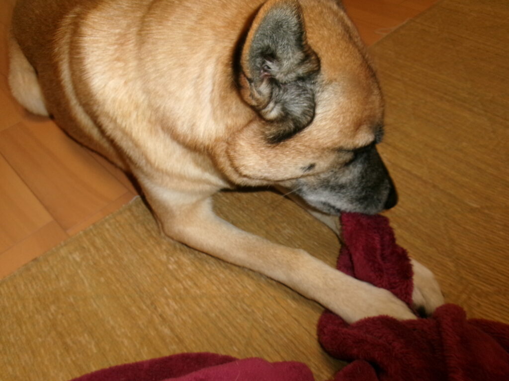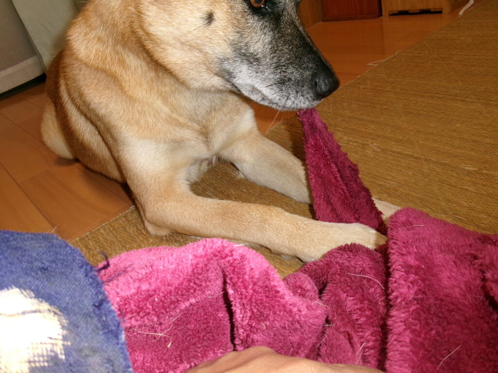 茶太郎のおもちゃはゴムボールか咬み用ロープとなっていますが、古いタオルもあり、お気に入りはタオルとなっています。
