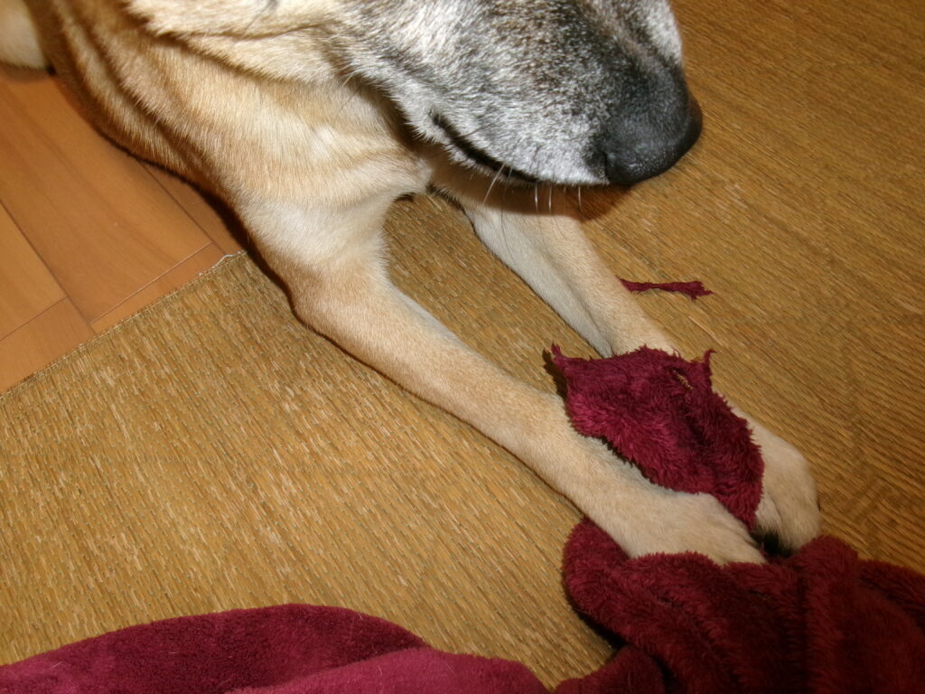 そのせいで他の布物もおもちゃだと思っているのか、たまに犠牲になる物もあります。
