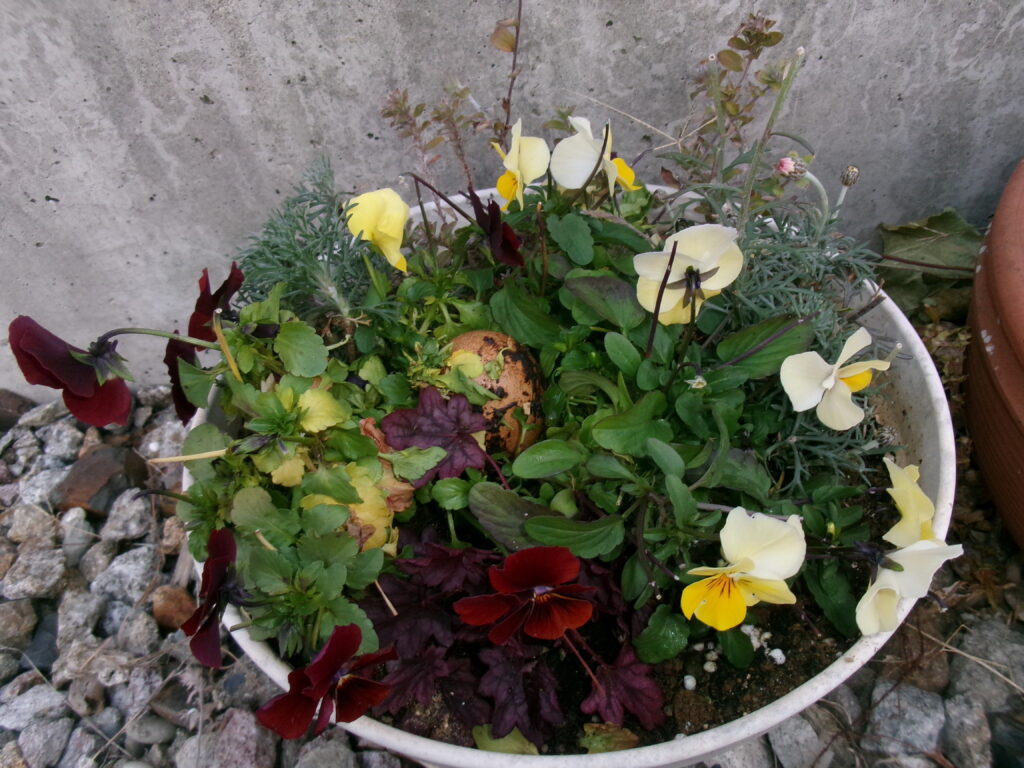 主が毎日水をやっている寄せ植え鉢。