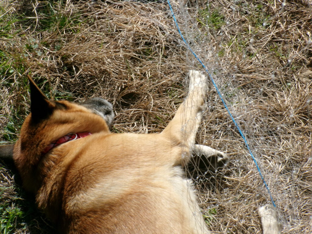 寒い時期には日向を求めていた茶太郎ですが、時々日陰に入るようにもなりました。