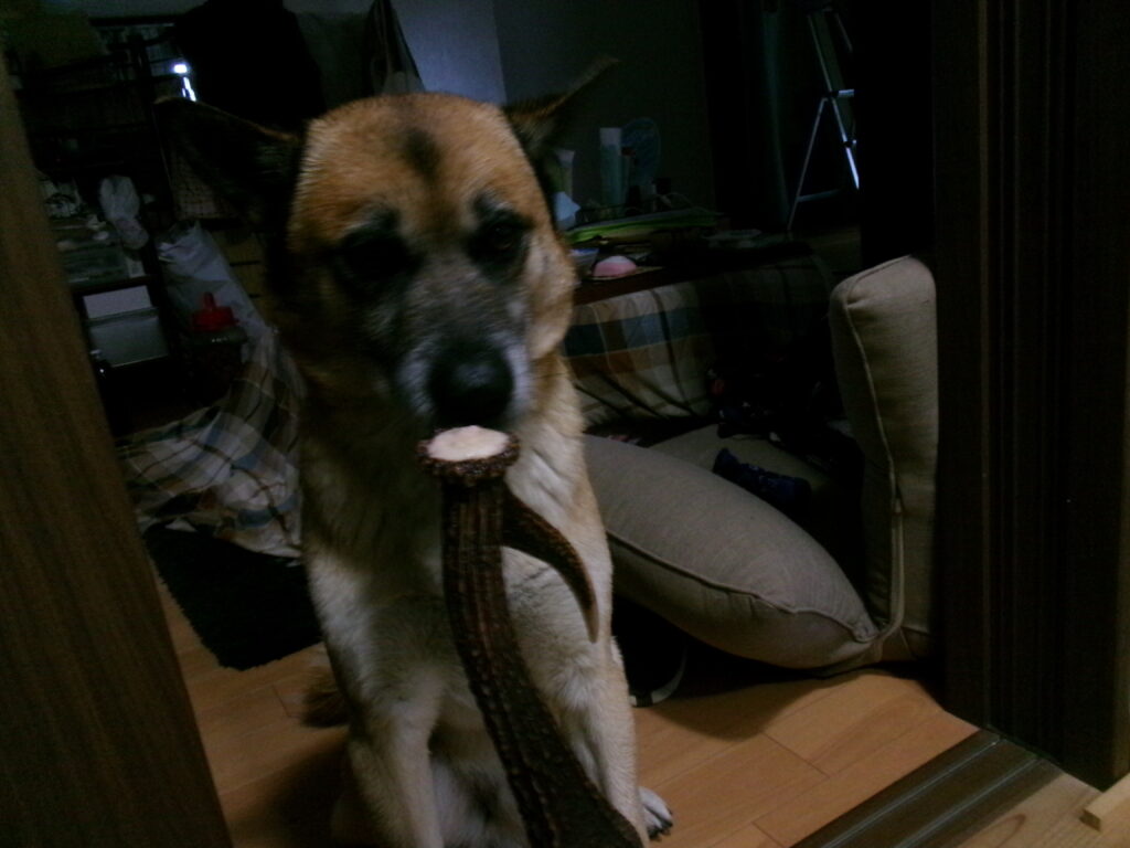 持ち帰った角も飾り物になるかと思いましたが、今のところ茶太郎のお気に入りのおもちゃになっています。