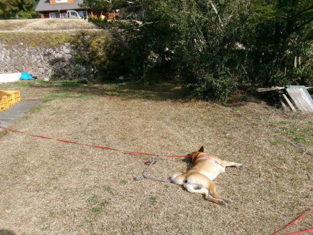 山中に突撃したかったのに繋がれてしまった茶太郎がふて寝した時。