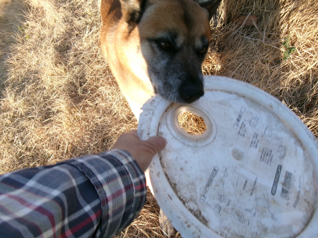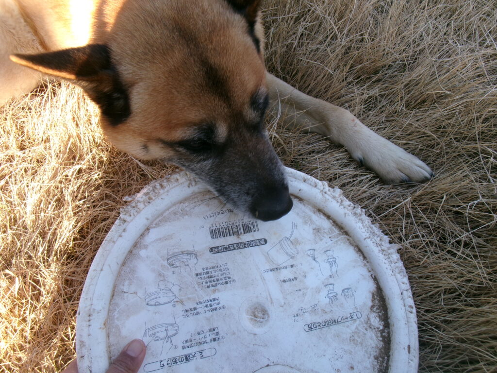 で、これは茶太郎にはちょっと大きいし、縁の所が当たり前ですが持ち手になってないから固いのでどうかと思うんですが、この日はこれがツボに入ったようです。