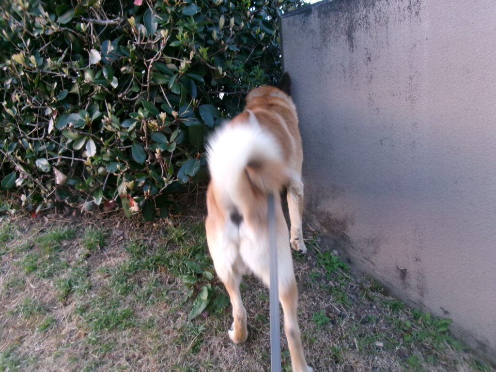 そこに来る色んな動物の匂いも気になるんでしょうが、獣医さん宅にも犬がいるようで、しきりに匂いを嗅いでいます。